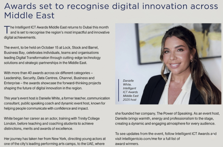Her clients include leaders from Fortune 500 companies, Emirates Group, PWC, and TAQA, alongside established entrepreneurs and founders across the world. Danielle’s work bridges the science and art of communication – helping clients find not just their voice, but their power.